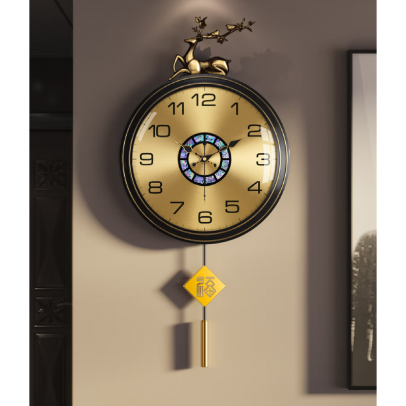 New Chinese-style Home Yellow Copper Deer Luxury Wall Clock